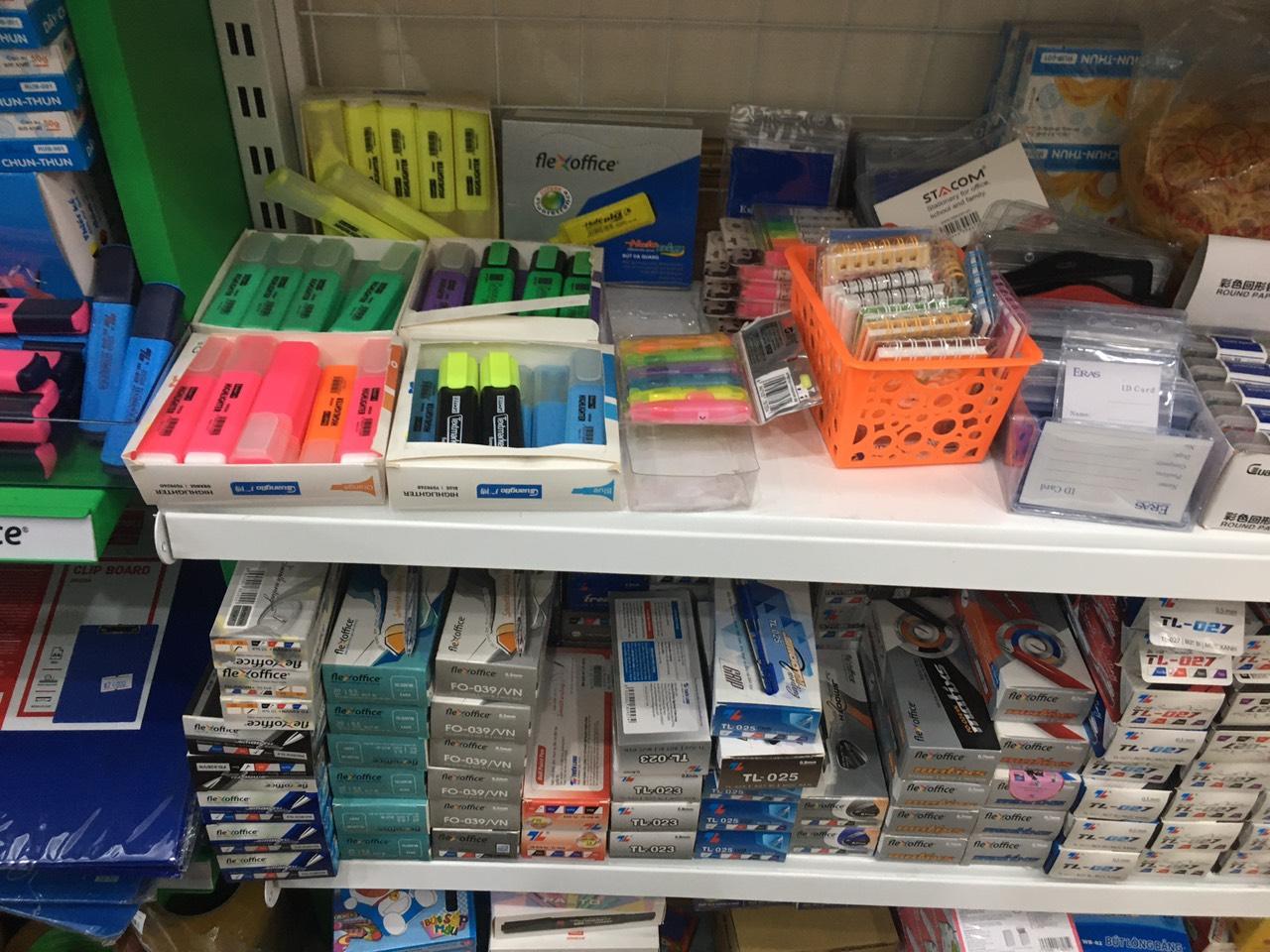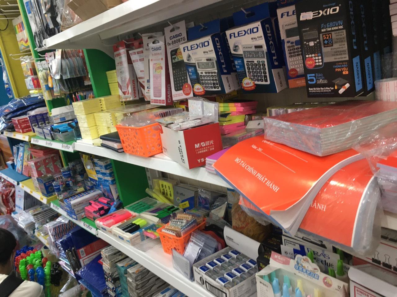 - Văn phòng phẩm, bút viết, dụng cụ học sinh, sản phẩm về giấy, dụng cụ vẽ, máy tính Casio.